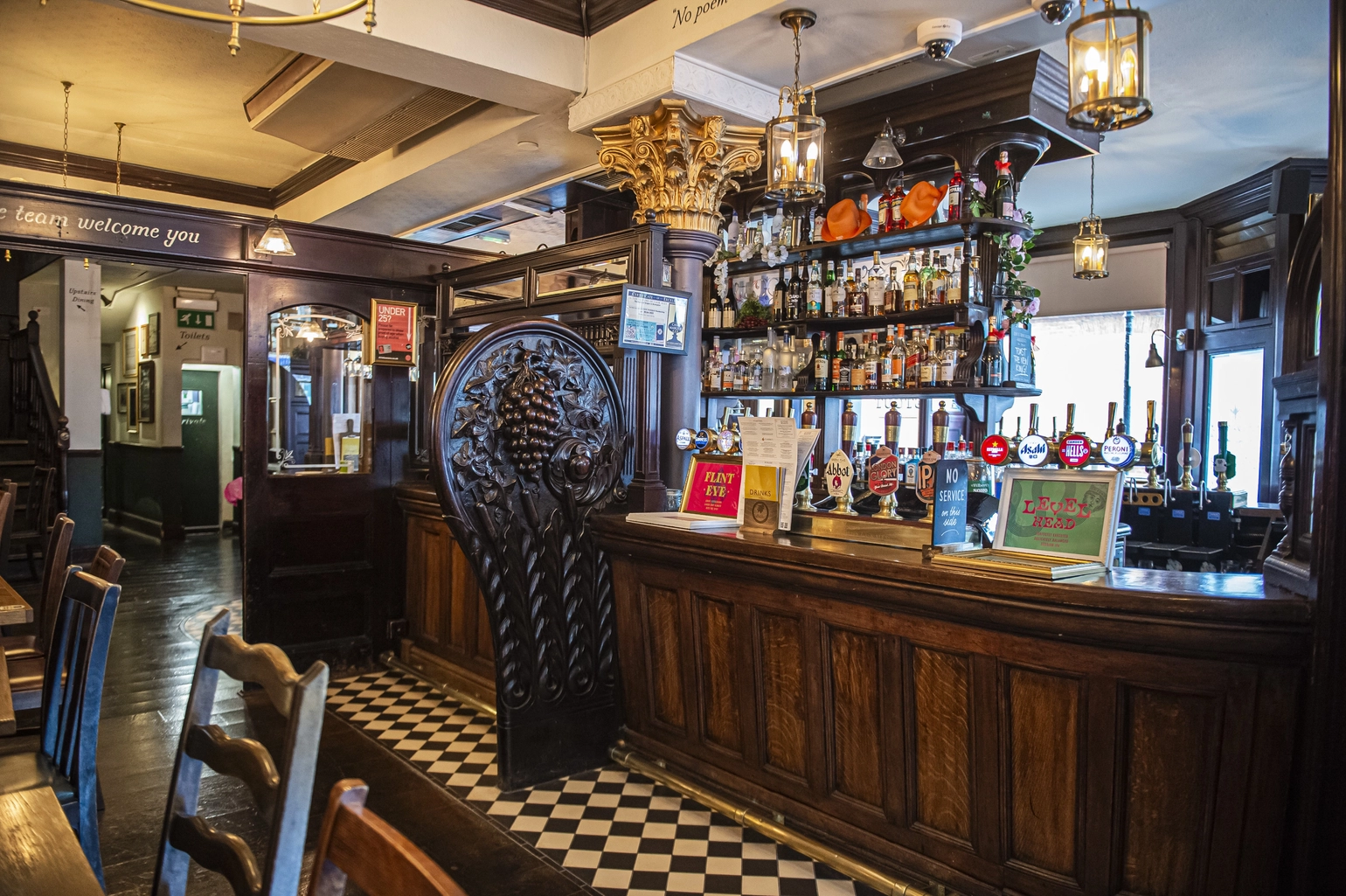 The Bunch of Grapes, built in 1644, still holds tight to a traditional British pub mentality even though we are surrounded by modern London. Nearly all of our interior is original including the snob screens which were used to separate the rich from the working-class patrons when drinking and gossiping.